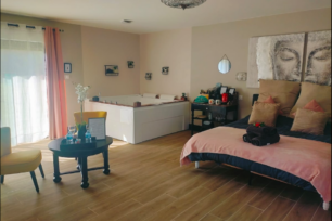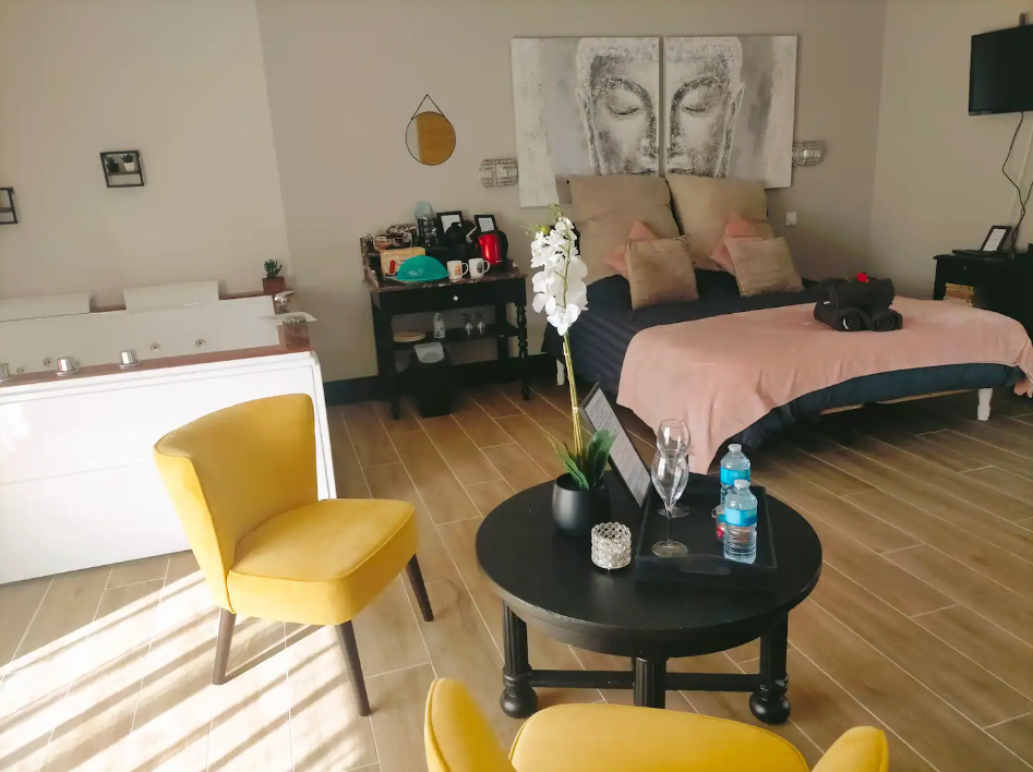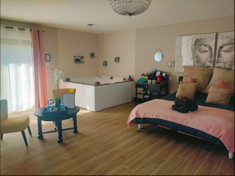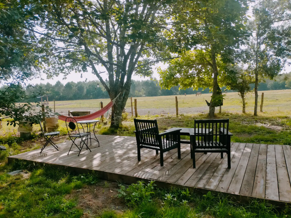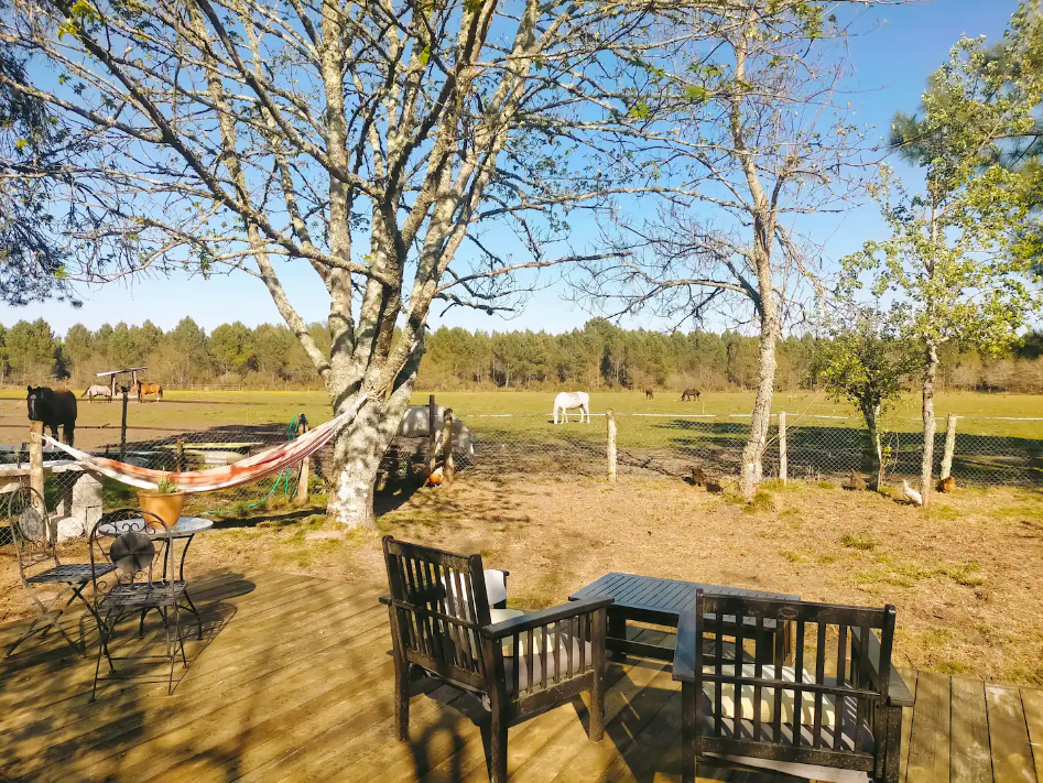 En pleine nature, dans un domaine de 22 hectares, le Domaine « l’orée du marais » propose une magnifique chambre d’hôtes de 38 m² qui saura vous séduire pour passer un agréable moment en toute déconnexion. Tout le confort nécessaire est à votre disposition. Un jacuzzi est également présent dans la suite (50€ supplémentaire sont demandés pour l’utiliser). Vous disposerez d’une grande terrasse en bois privative où vous apprécierez l’environnement propice au calme et à la douceur de vivre avec une vue imprenable sur la prairie des chevaux. Le Domaine est situé à équidistance du Bassin d’Arcachon et de la Métropole Bordelaise. (30 minutes). Ne tardez plus pour passer un séjour idéal sous le signe du tourisme vert et de l’écotourisme.