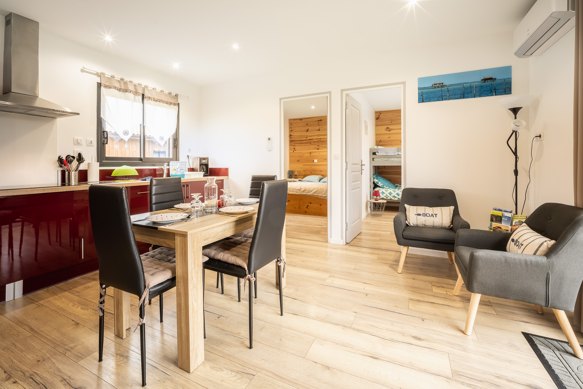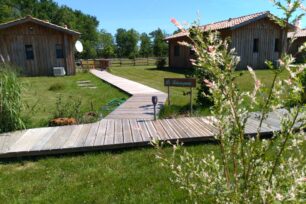 Le Domaine de Sophie dispose de 6 chalets en bois, décorés, meublés avec soin et avec tout le confort nécessaire pour passer un bon séjour. Situé sur un terrain de 2 hectares, les chalets sont composés d’une pièce à vivre avec cuisine équipée, 2 chambres (1 lit 140 et 2 lits 90 superposés), une salle d’eau, un WC séparé. Climatisation réversible. Vous pourrez profiter d’une terrasse ensoleillée avec tout l’équipement nécessaire pour profiter d’un moment de détente à la campagne. Draps, linge de toilette et linge de cuisine inclus. Les animaux de la ferme vous accueilleront durant votre séjour sur le domaine.