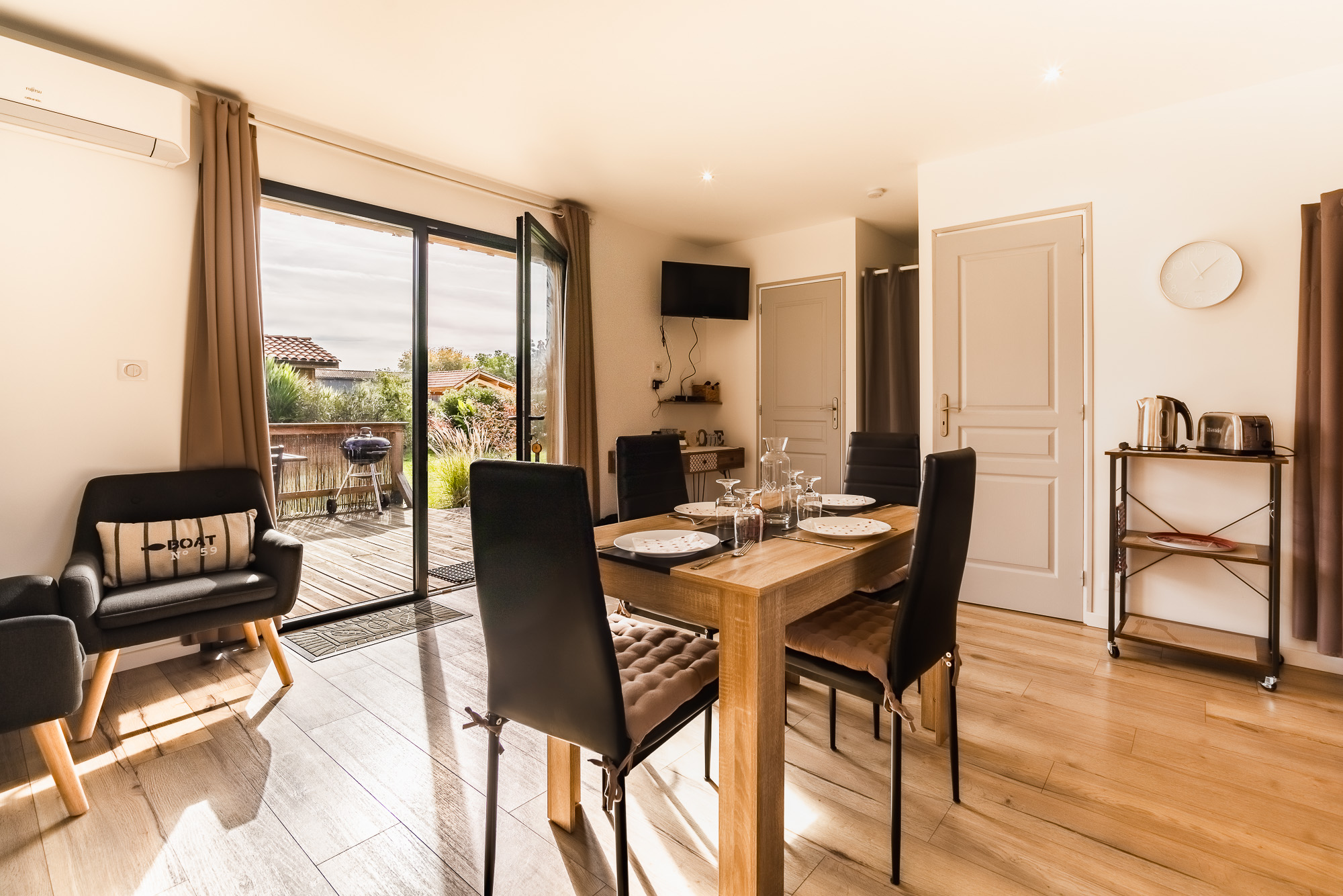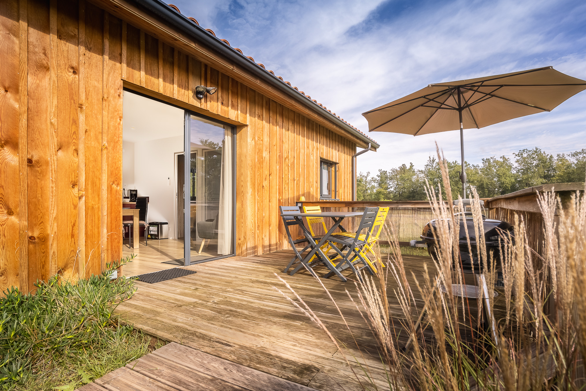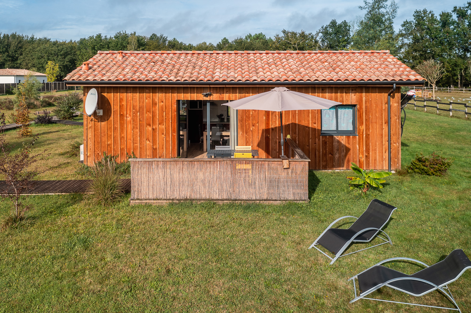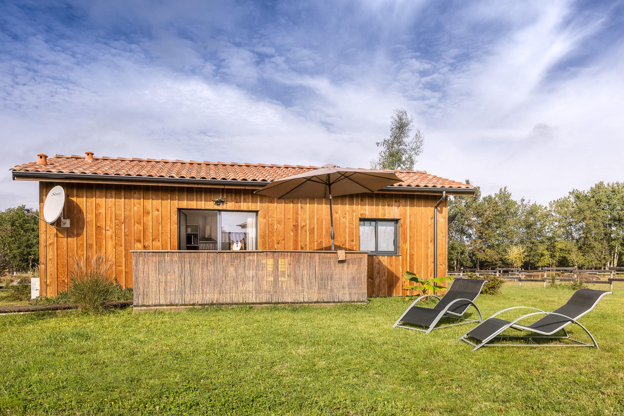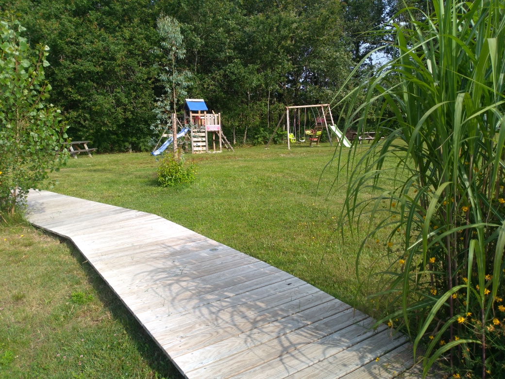Le Domaine de Sophie dispose de 6 chalets en bois, décorés, meublés avec soin et avec tout le confort nécessaire pour passer un bon séjour. Situé sur un terrain de 2 hectares, les chalets sont composés d’une pièce à vivre avec cuisine équipée, 2 chambres (1 lit 140 et 2 lits 90 superposés), une salle d’eau, un WC séparé. Climatisation réversible. Vous pourrez profiter d’une terrasse ensoleillée avec tout l’équipement nécessaire pour profiter d’un moment de détente à la campagne. Draps, linge de toilette et linge de cuisine inclus. Les animaux de la ferme vous accueilleront durant votre séjour sur le domaine. Parking commun à l’entrée du domaine.
