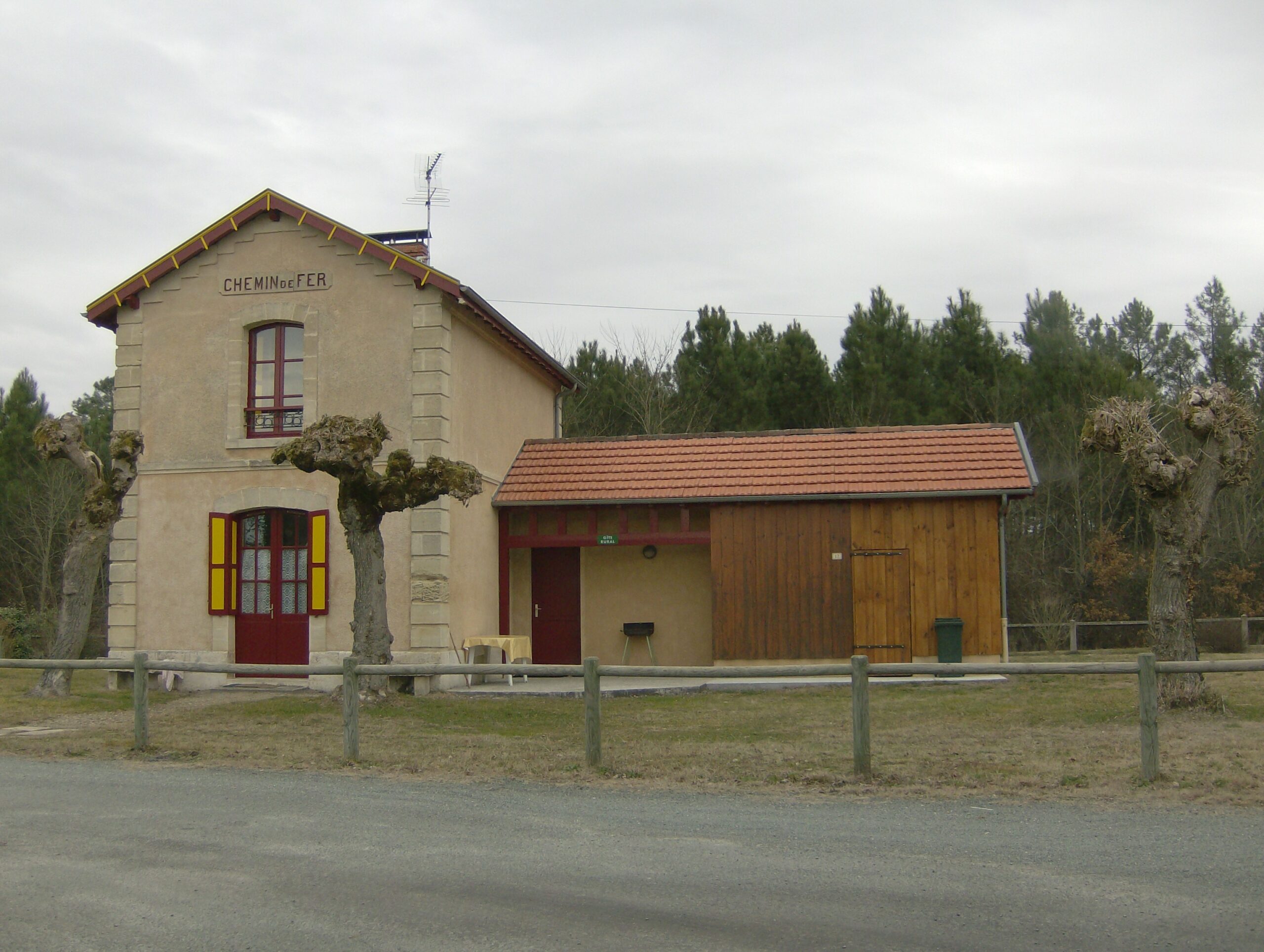 Ancienne gare de hameau du XIXème, située dans le Parc Naturel des Landes de Gascogne, près d’une piste cyclable, terrain, terrasse, parking. Au rdc : cuisine (micro-ondes)/coin repas, cellier, salon, salle d’eau, wc. A l’étage : 2 chambres (1 lit 140, 2 lits 90). Chauffage électrique inclus. Possibilité de location de draps (10 €/paire), linge de toilette (7 €/pers), linge de cuisine (5 €). Ménage fin de séjour 100.00€. Caution 300€.