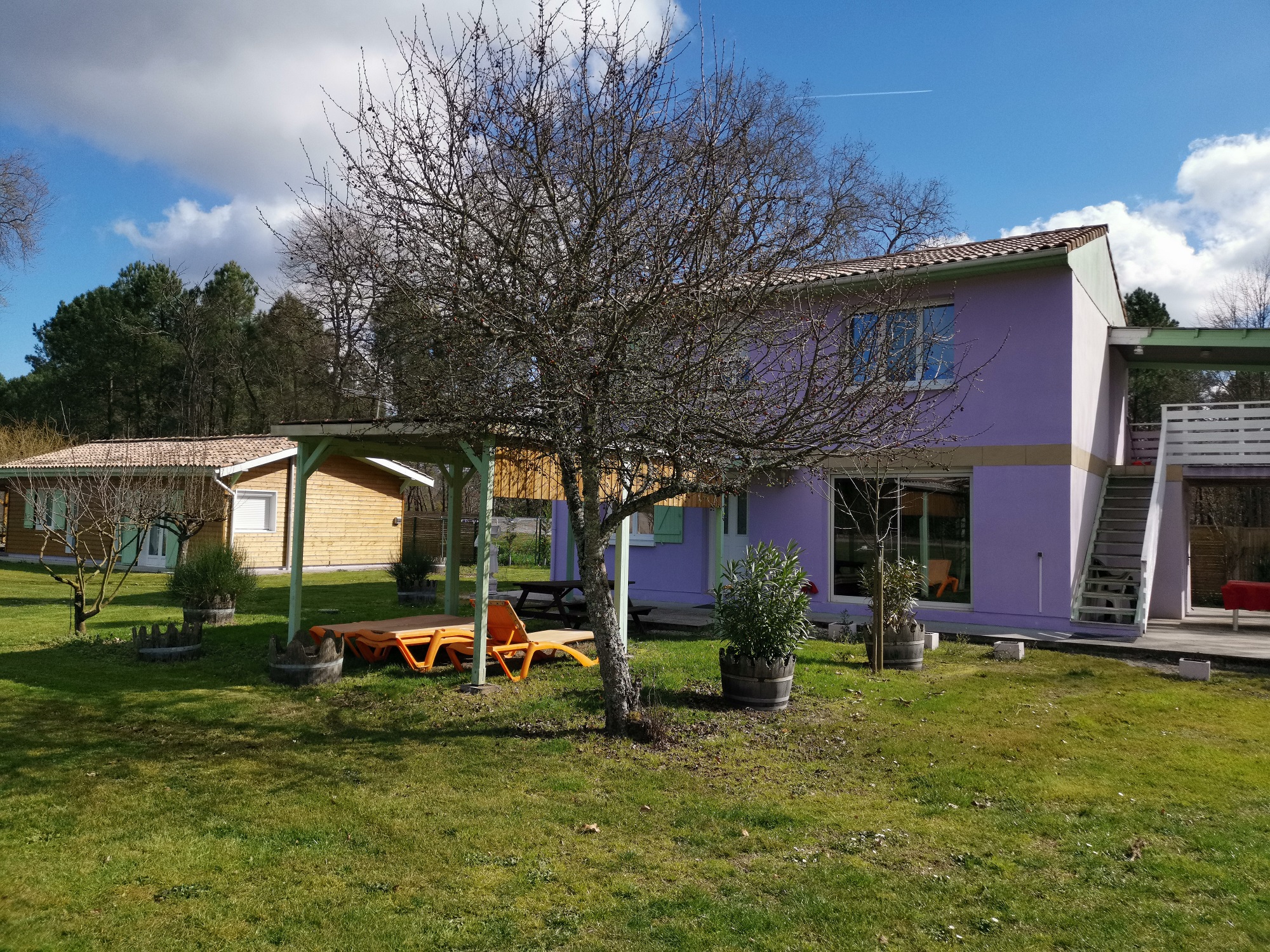 Deux gîtes sur un terrain calme et clôturé. A proximité de la forêt. Décoration très soignée et tout confort. Accès piscine.