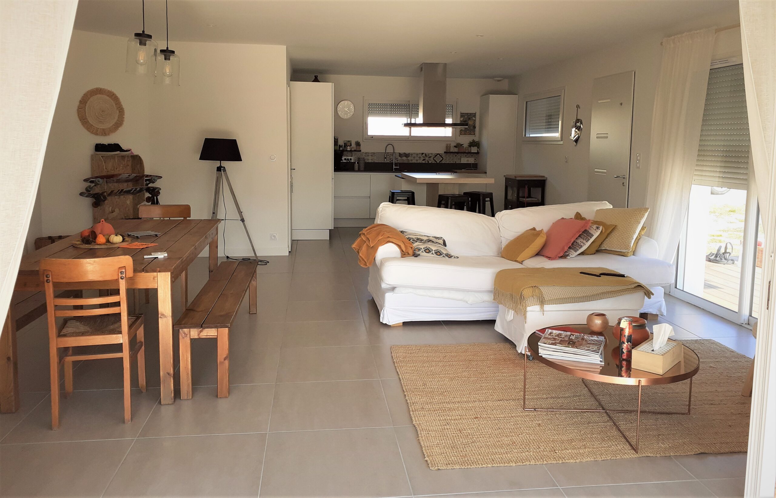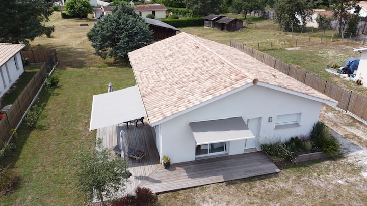 Jolie maison contemporaine en parfait état. 5 à 6 couchages, située dans un quartier calme à proximité de la piste cyclable, et du centre ville. Décoration soignée avec tout le confort nécessaire pour passer un agréable séjour. 3 chambres dont 1 suite parentale, 1 bureau, cuisine ouverte, vaste séjour lumineux sur terrasse et jardin, salle de bain, Terrasse et jardin.