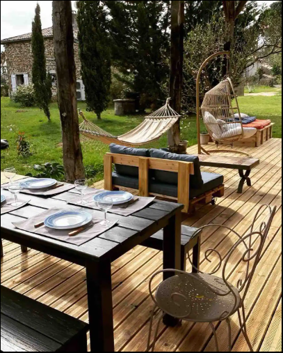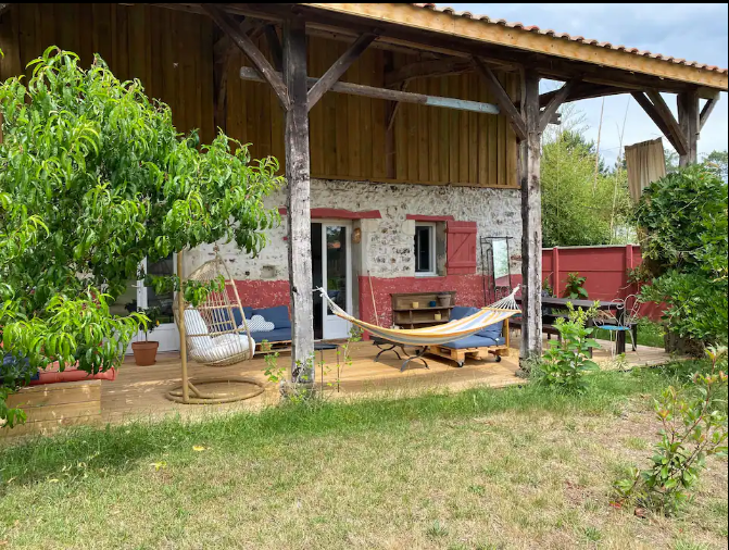Grange rénovée charmante, donnant sur un grand jardin, son immense terrasse couverte, la sérénité d’un village perdu à l’orée des Landes, du Bassin d’Arcachon, de l’océan et de l’Eyre. Oubliez vos soucis dans ce logement spacieux et serein. Grand T2 avec sa vaste terrasse. Au cœur d’un village forestier, la grange du coq se situe à 35 min de la dune du Pilat et de Biscarrosse, à 30 min du Bassin d’Arcachon, à 20 min des lacs de Sanguinet et d’Hostens, à 5 min de l’Eyre.