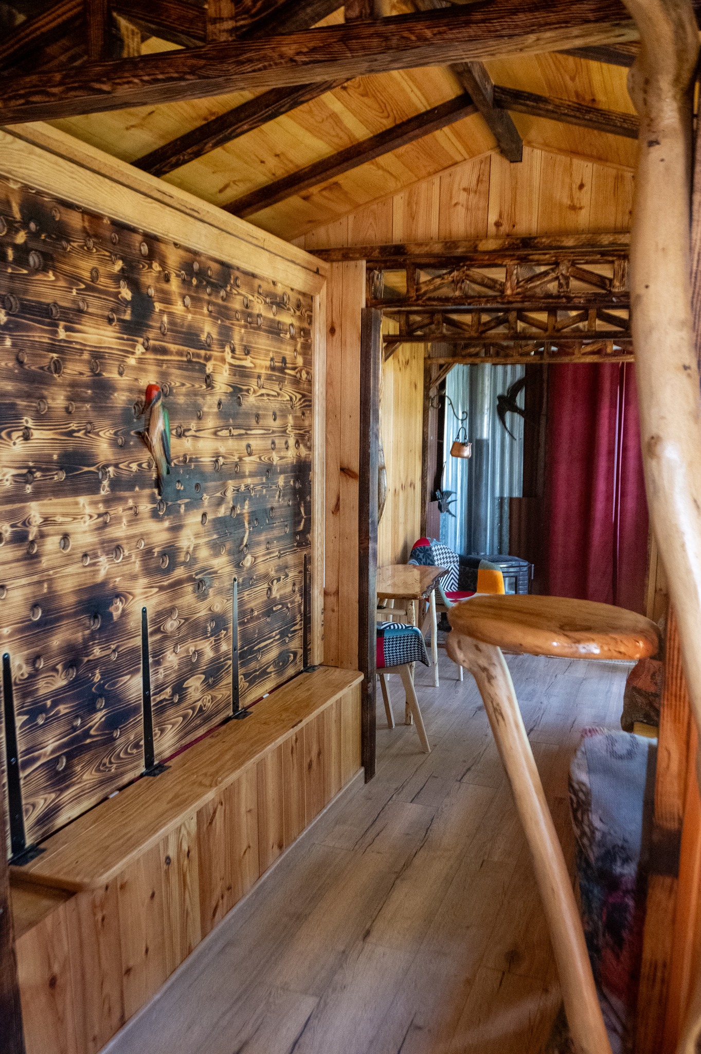 Notre roulotte pleine de charme est toute en bois et posée au cœur d’un parc arboré, vous pourrez profiter d’un cadre naturel dans votre roul’hôte aménagée avec confort. Conçue pour 2 adultes pour une escapade en amoureux vous goûterez la sensation d’être au cœur du vert. Vous pourrez vous restaurer avec la rôtisserie au feu de bois de David.