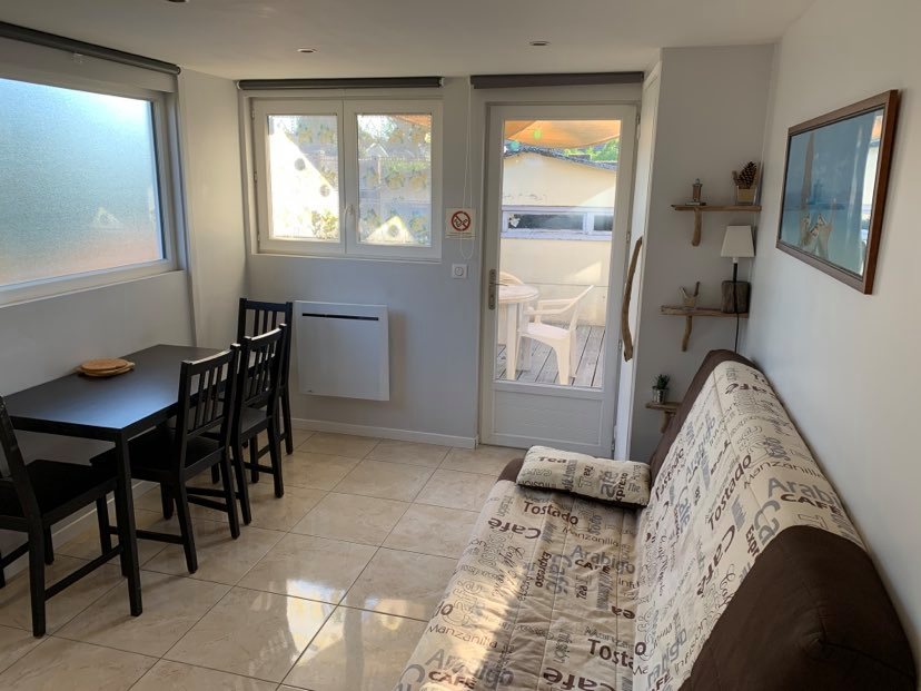 Meublé mitoyen de la maison des propriétaires où vous trouverez tout ce dont vous avez besoin pour votre séjour : petit coin salon-séjour très lumineux avec un canapé clic-clac, salle d’eau, cuisine ouverte et chambre avec lit double. Une petite terrasse en bois vous permettra de profiter de l’extérieur.