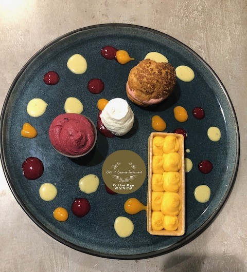 C’est un accueil familial qui vous attend dans ce restaurant de village. Vous y trouvez une cuisine généreuse (avec des spécialités de poissons) et revisitée comme le crumble de tomates et fromage, tatin de saumon fumé maison et courgettes, … en partenariat avec les artisans locaux (café, apéritif et miel ..). Tous les plats, des entrées jusqu’aux desserts (pâtissier de métier), sont élaborés à partir de produits frais de saison et/ou cultivés dans notre propre jardin Bio en été.